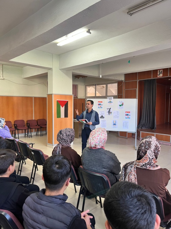 Gazzede yaşanan soykırıma dikkat çekmek ve bilinçlendirme amacıyla okul müdür yardımcısı Mustafa METİN yönetiminde Filistin'de yaşanan insanlık katliamına dikkat çekerek, Türk halkının her zaman filistin halkının yanında olduğunu dile getirdi.